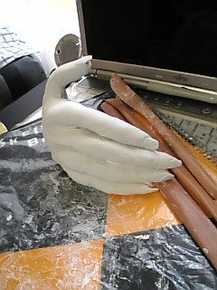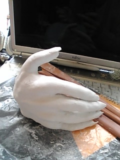 あらかたの造型を終わって乾かしてから細かいところ作ろう、と思って放置してたんですが、乾燥中のやつを見たママンが「気持ち悪い」と言うので、細かいとこ作んのめんどかったのもあって潰して捨てちゃったんですが、捨てる前に記念撮影(*´∀`*)