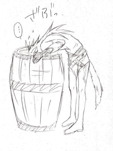 と言うことで暑さのあまり水樽に頭から突っ込むライを<描くな!!!