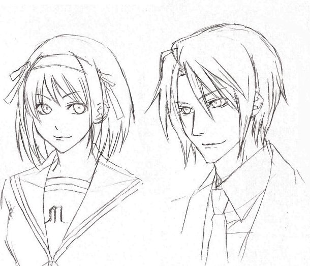 隣がキョンじゃなくて古泉なのは別に何かあったわけではありません。たまたまハルヒ描き終わって画面にいたのが古泉だったから。あれ、なんかサドっぽい顔になった。(薄ら笑いのせいか)