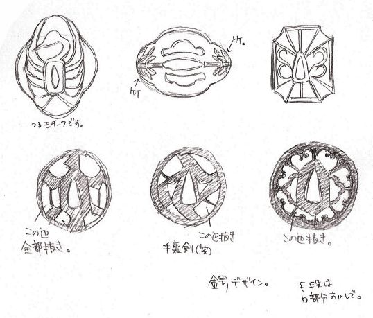 んでもう一枚は日本刀の鍔のデザイン案。すんなりこの中のどれかが通ればいいなあ。