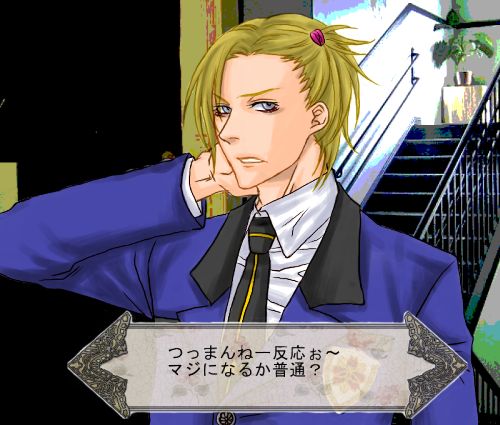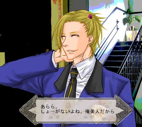 日記を読んだらしくて「いっそ乙女ゲー作りましょうよ」とかアホなこと言い出しやがったので巫山戯てボツになったキャラでゲーム風画面を作ってみました(チャット中に)<アホ。