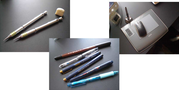 アナログで描くときは、落書きならキーボードの上にクロッキー帳乗っけてそのまま描いてます。筆圧弱い子ちゃんなのでその状態で描いていても無駄なキーを押してしまわない俺。