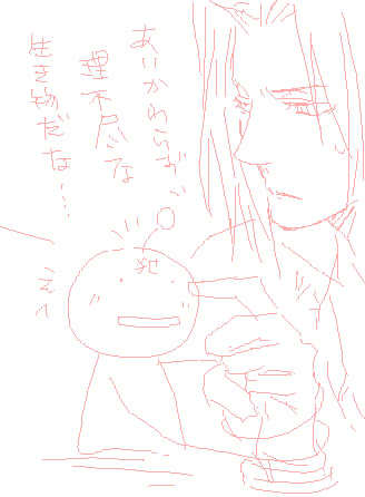 あーよかった。もう絶対この人から離れないあたしって思ってね、何か物凄くぼーっとつっ立ってるセフィロスさんの後ろに立って、どこ行くんかなあって背中のあたりを眺めてるんですよ。