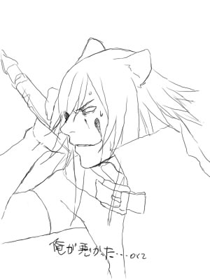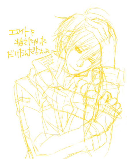 と言うわけで、右が痛いなら左で描けばいいと思って左で描いたら、こんなものに1時間以上かかった挙句見れたもんじゃねえアレが出来上がったよ。もう最低(涙目)<馬鹿がいます。