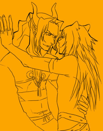 膝の上に乗っかってる雰囲気を描くつもりだったんですが、描きながら「なんだその甘い雰囲気。ちょっと違うだろ」とか思って迷いながら描いたらこんな事に。