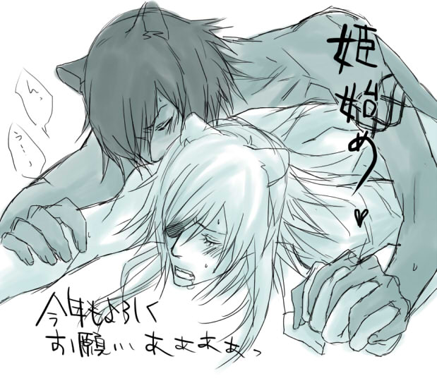 因みに押し倒した事を悪いとは思っていないうちのアサトさんです。酷いことってのは、あれライの肩に噛み付いてるんで(笑)<見えない拘り。