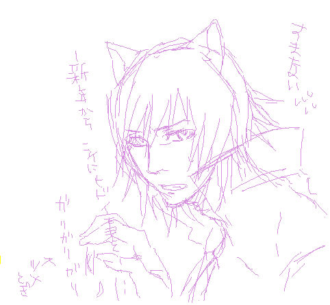 なんかこれの横にユキたんが「素人絵師ヒエラルキー」とかいうの書いてて、もうピラミッドから外れたとこに「あたしこの辺」とか書きやがったんで、「んじゃおいらこのへんな」って、さらにピラミッドから離れたところに雪邑さんを描いて置いてあげたのに、シキティに鼻血描くのに夢中になってる間に頂点に上げられててびっくりしました。何やってんのお前!<素でびっくりした人。