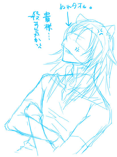 パレットにオレンジがのっていたからそれで下絵を描いたら目が痛くなった。そんなシキティー(笑)