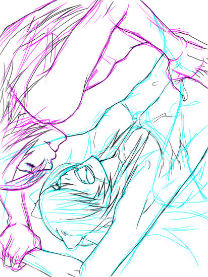 雪邑さんの下書きは水色かピンクです。